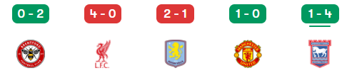 원정 팀 맨체스터 시티가 13승 5무 8패로 리그 4등에 위치 됐습니다.