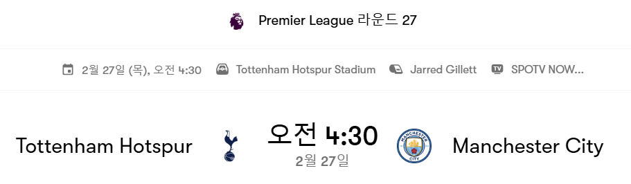 안녕하세요 이번에 프리뷰 해볼 경기는 프로토 승부식 25회차 프리미어리그 토트넘 vs 맨체스터 시티 경기입니다.