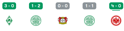 원정팀 바이에른 뮌헨은 3승 2무, 최근 원정경기는 레버쿠젠 상대로 무승부를 하였습니다.