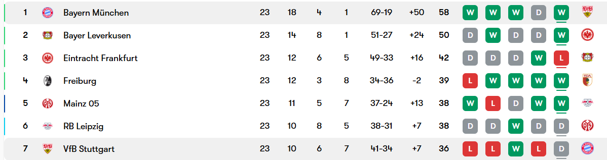 원정 팀 바이에른 뮌헨은 18승 4무 1패로 리그 1등에 위치된 상태입니다.