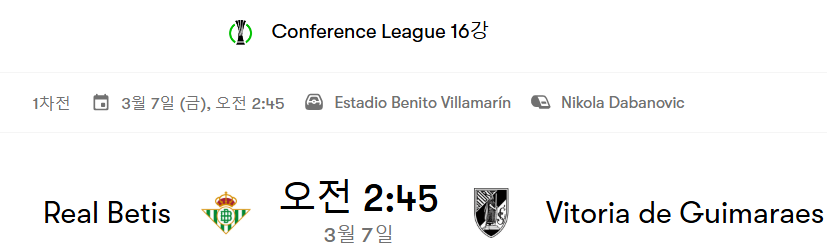 안녕하세요 이번에 프리뷰 해 볼 경기는 프로토 승부식 28회차 3월 7일 레알 베티스 홈에서 열리는 유로파 컨퍼런스 리그 레알 베티스 vs 비토리아 SC의 경기입니다.