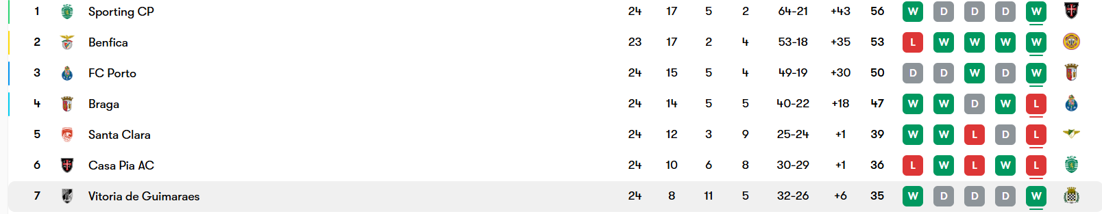비토리아 SC는 포르투갈 리그에서 7등을 기록중입니다.