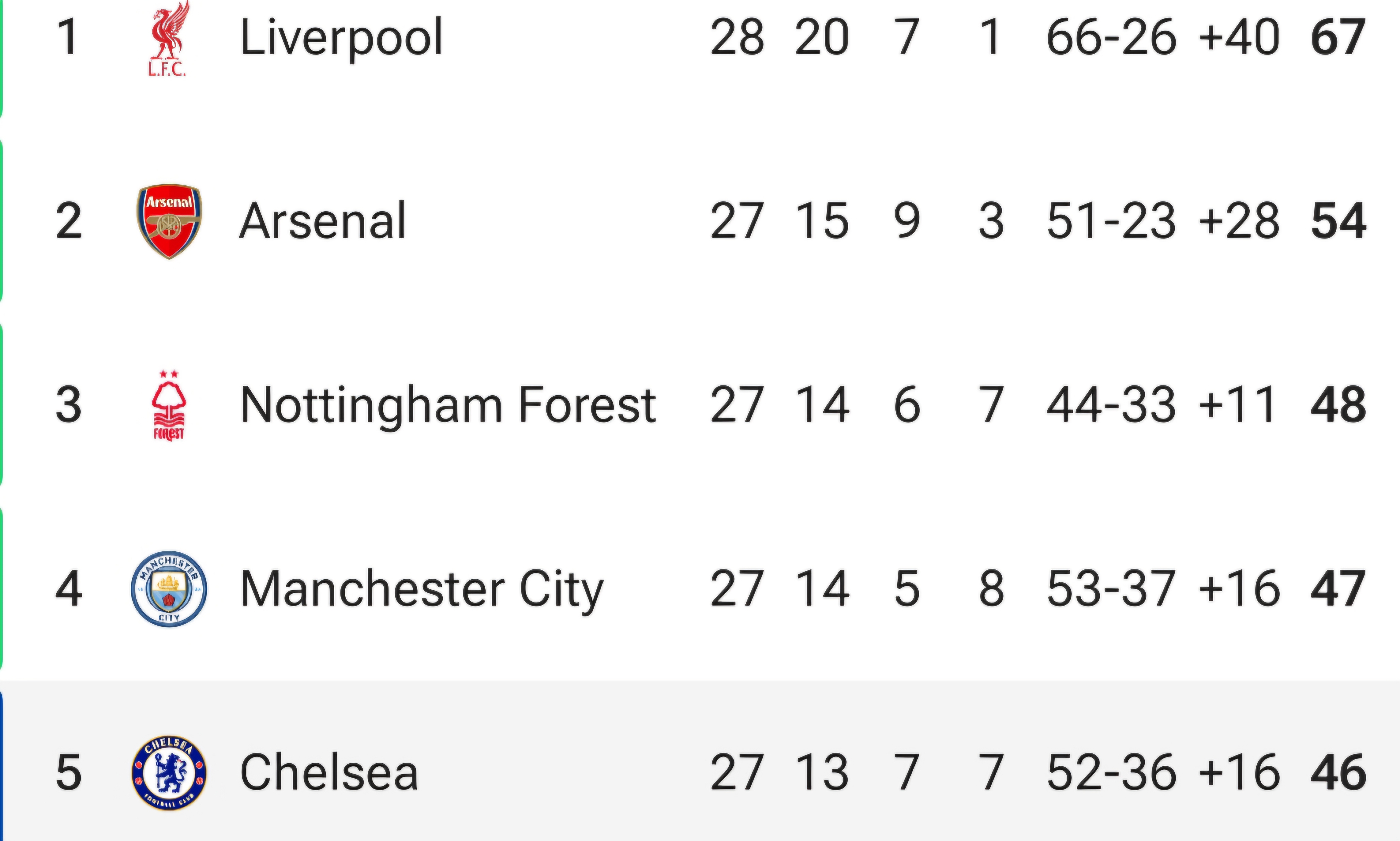 원정 팀 첼시는 프리미어리그에서 5위를 기록중입니다.