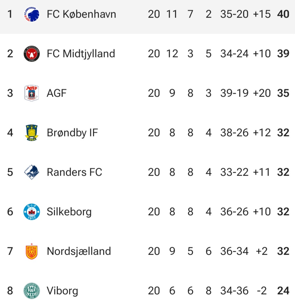 홈 팀 코펜하겐은 덴마크 리그에서 1위를 기록중입니다
