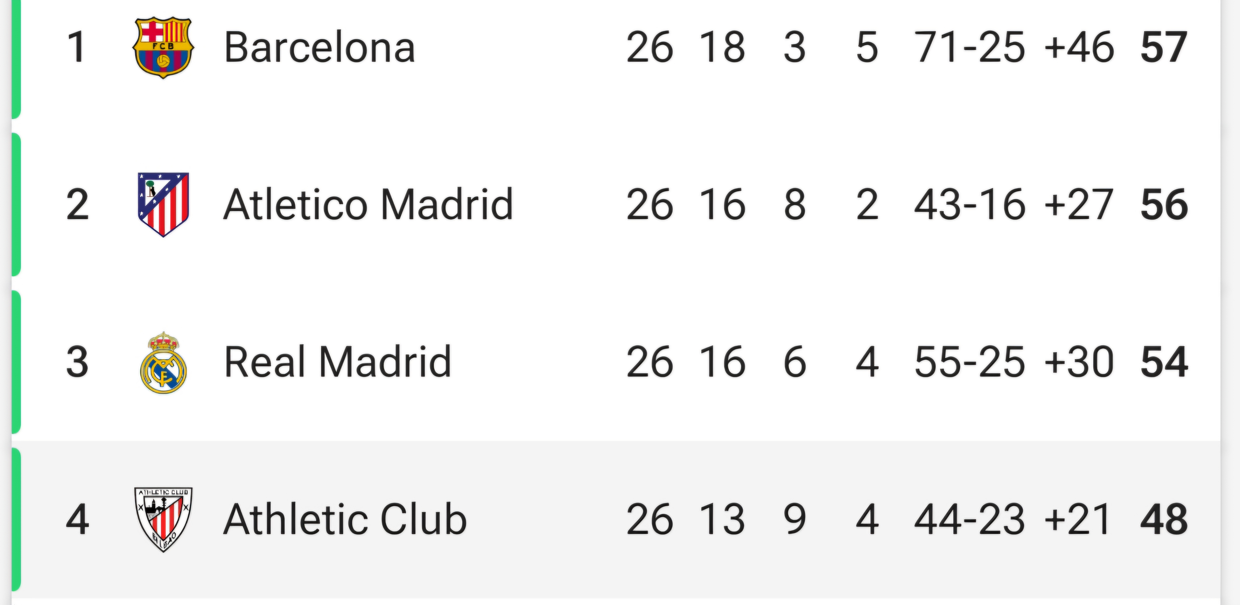 원정 팀 빌바오는 프리메라리가 4위에 위치해있습니다
