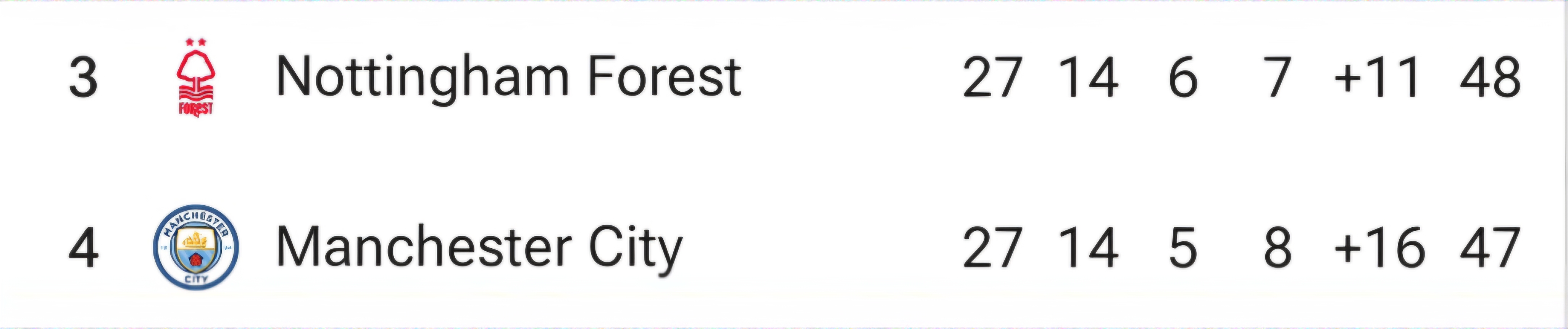 지금 현 상황은 챔스 경쟁이 좀 빠듯한 상황이기에 3위인 노팅엄이랑 챔피언스 리그 티켓을 걸고 싸운다고 해도 과언이 아닙니다 그리고 맨체스터 시티는 지금 좋은 흐름을 타고 있고 노팅엄은 흐름이 좋지 않기에 대비되는 상황이기도 합니다.